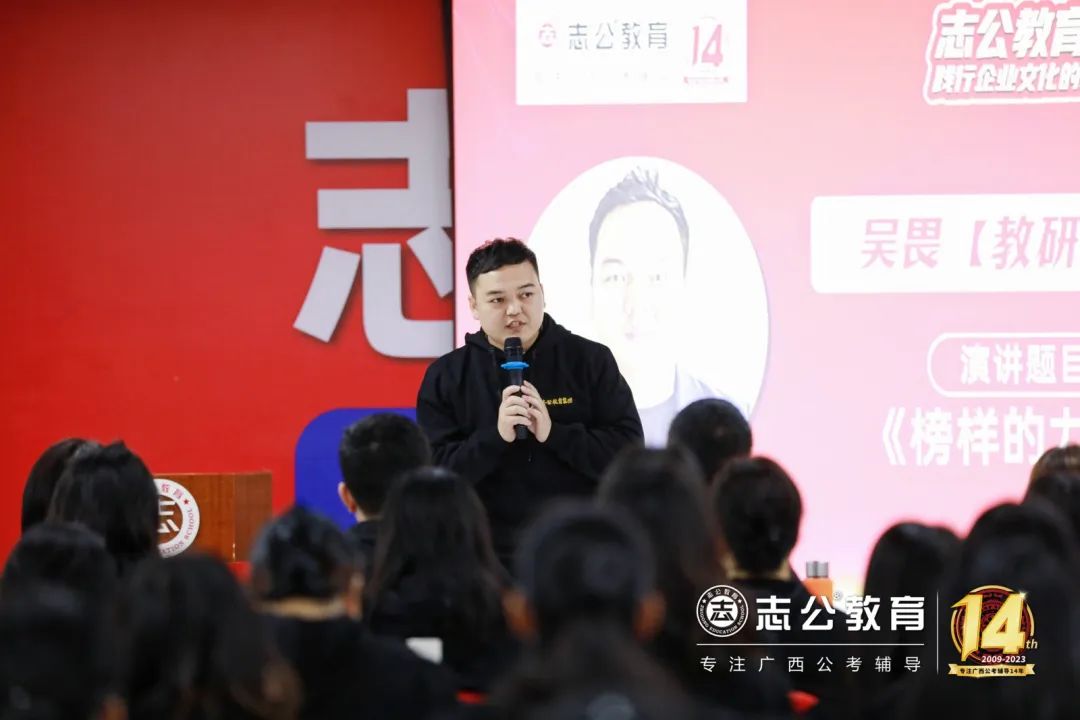 一直以來(lái),志公教育都秉承著“12條企業(yè)文化核心價(jià)值觀”,包括客戶原則——以學(xué)員為中心”、“管理原則——人人都是經(jīng)營(yíng)者”等12項(xiàng)原則,扎根廣西本土公考,全力服務(wù)每一位志公學(xué)員。在董事長(zhǎng)李勇的正確領(lǐng)導(dǎo)下,在廣大學(xué)員的支持下,在全體員工的共同努力下,志公教育從無(wú)到有,從小到大,不斷夯實(shí)發(fā)展基礎(chǔ),贏得了客戶的信賴和品牌形象。全體志公人將堅(jiān)定目標(biāo)齊奮斗、凝心聚力再出發(fā),為志公高質(zhì)量發(fā)展再立新功。