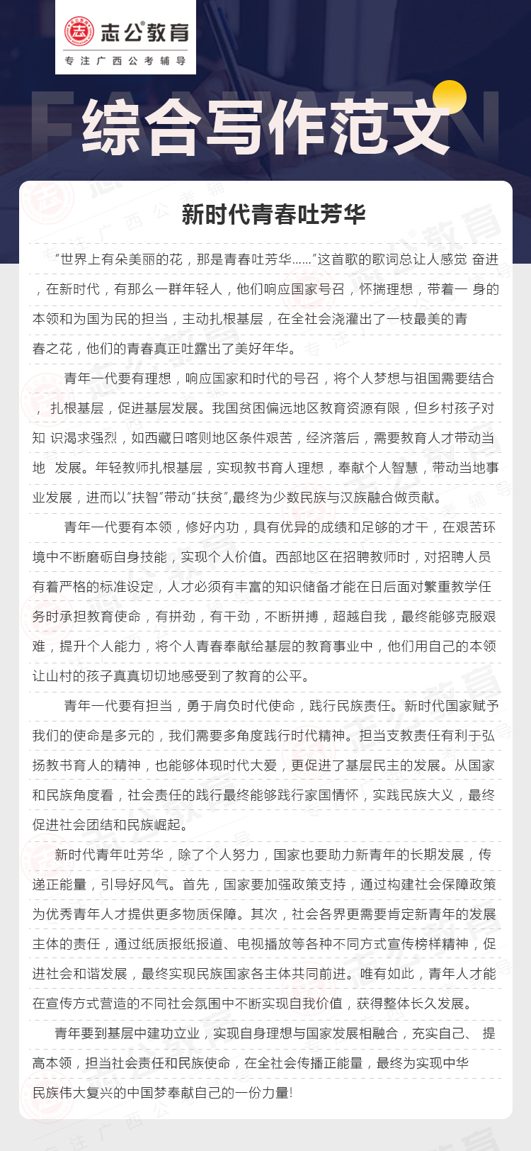 綜合寫(xiě)作范文四:新時(shí)代青春吐芳華