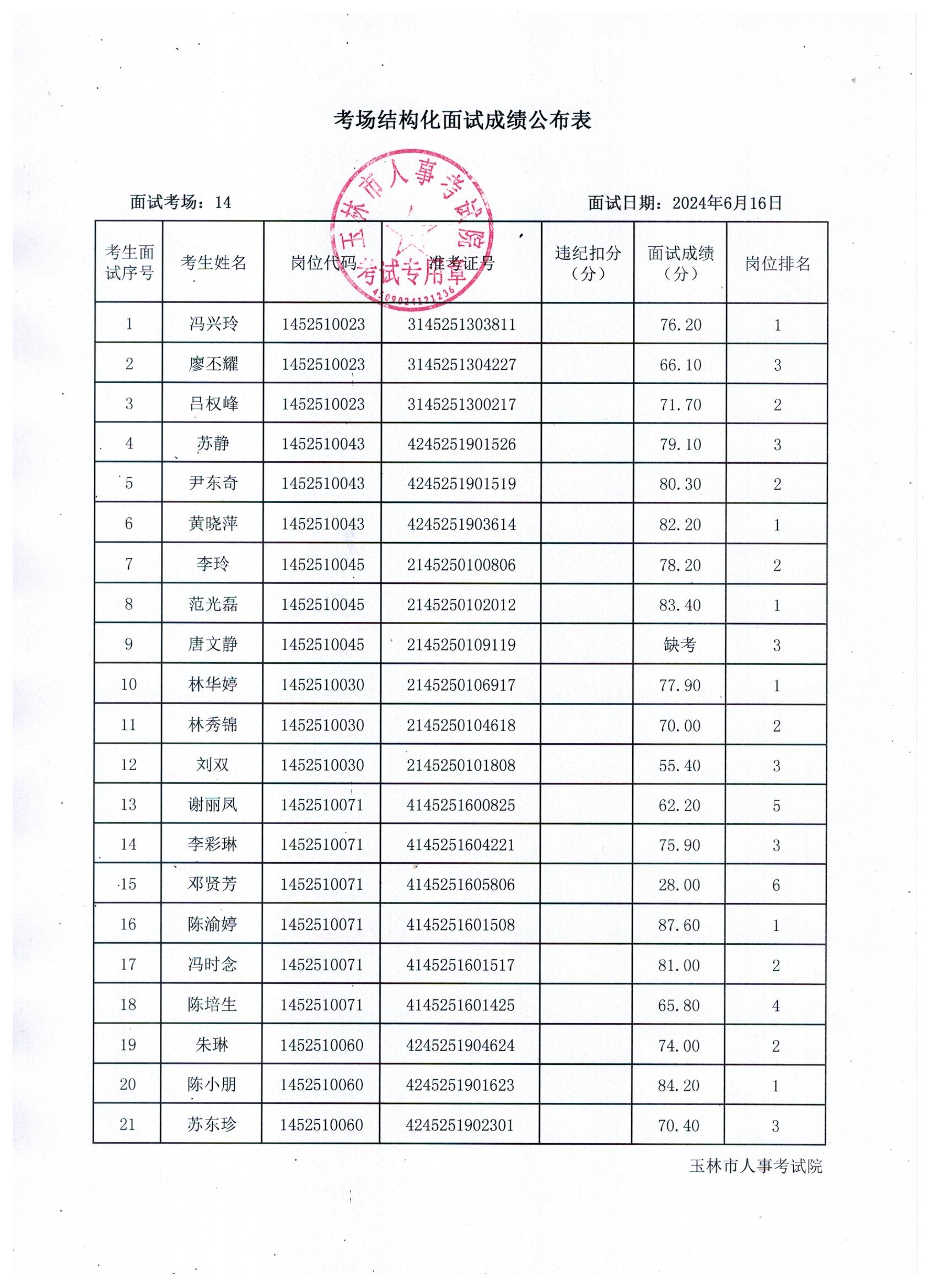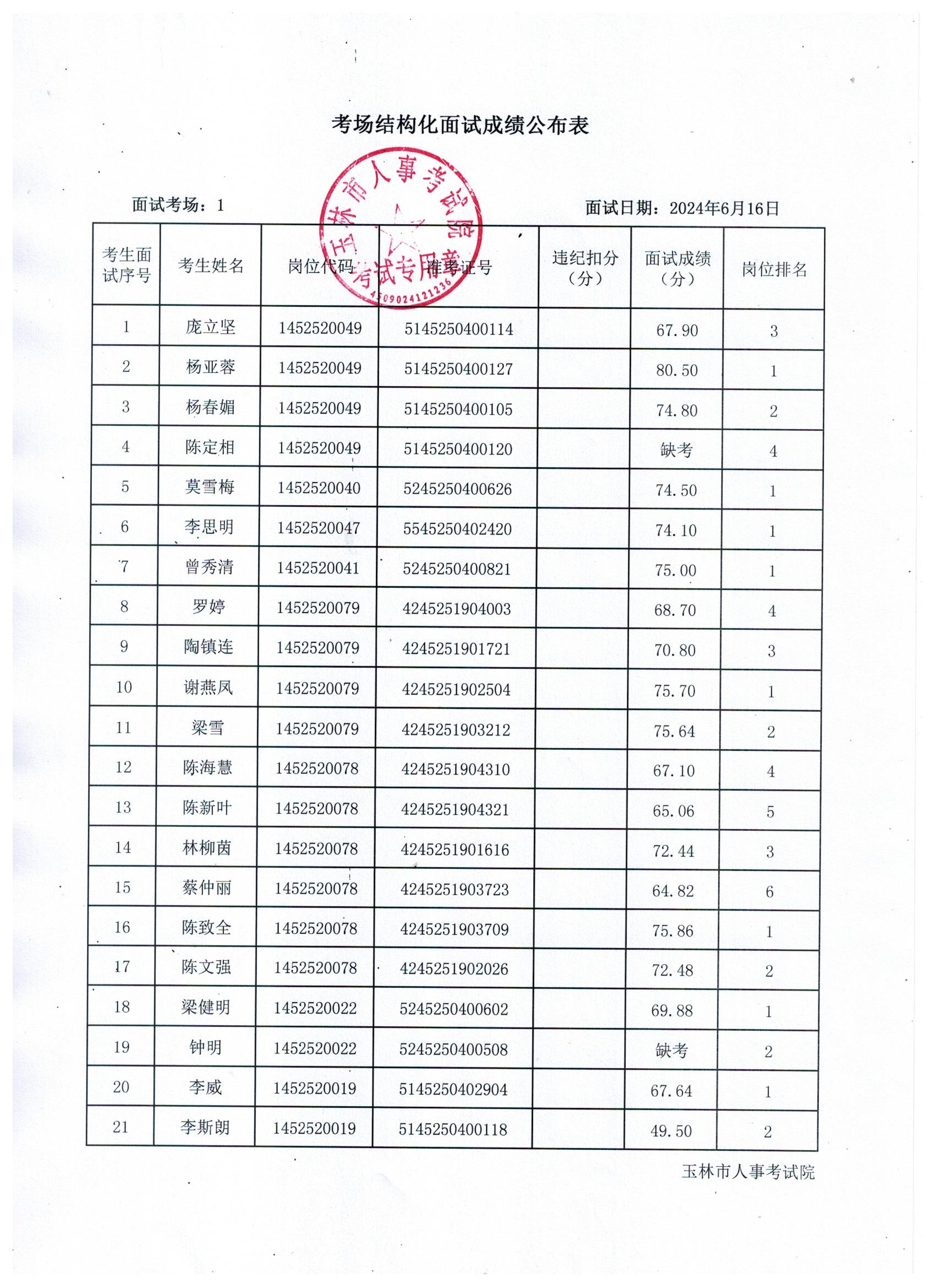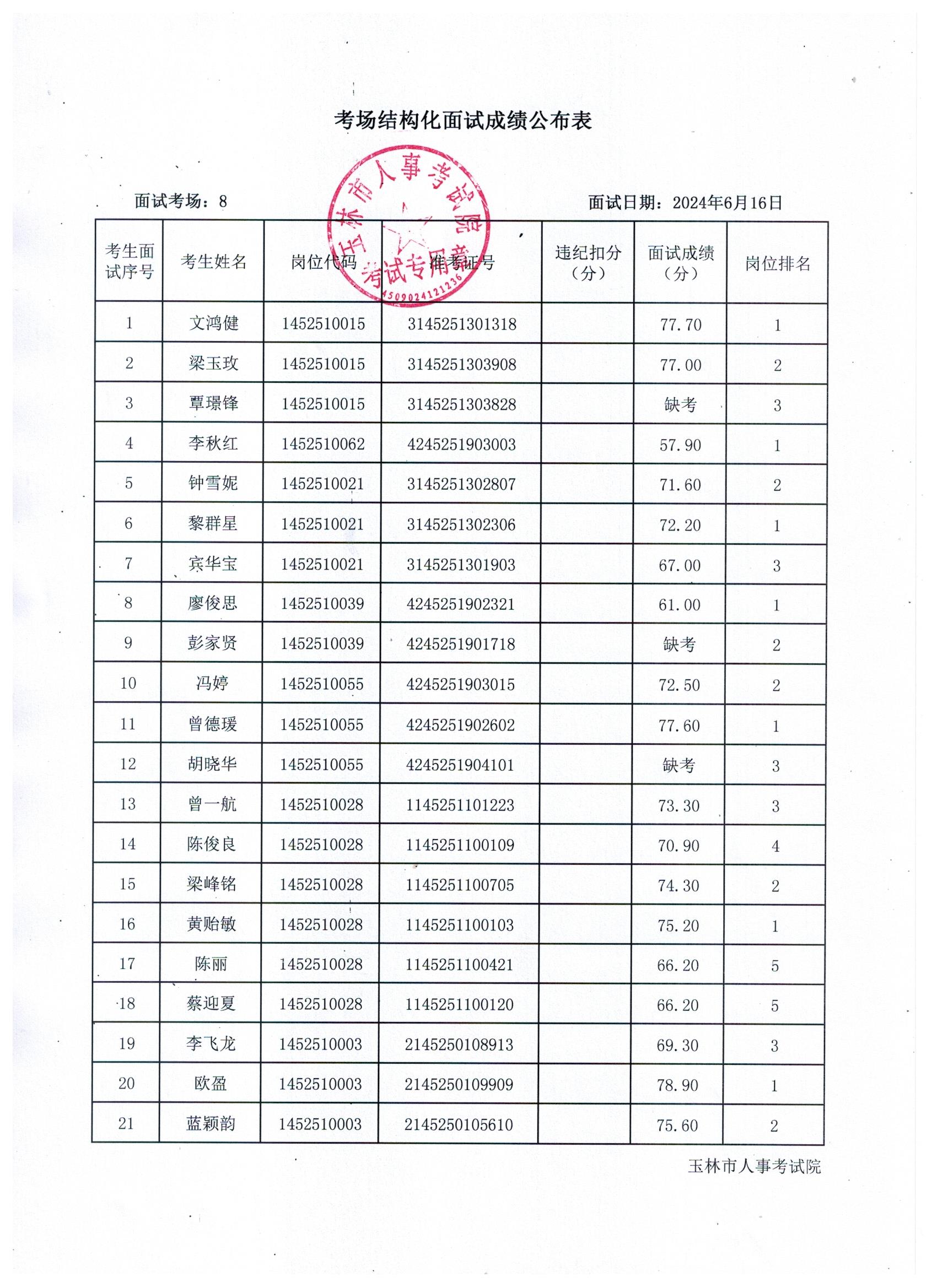 原文標(biāo)題:2024年玉林市直(含玉州區(qū)、福綿區(qū)、玉東新區(qū))事業(yè)單位公開(kāi)招聘人員面試成績(jī)公布(6月16日)