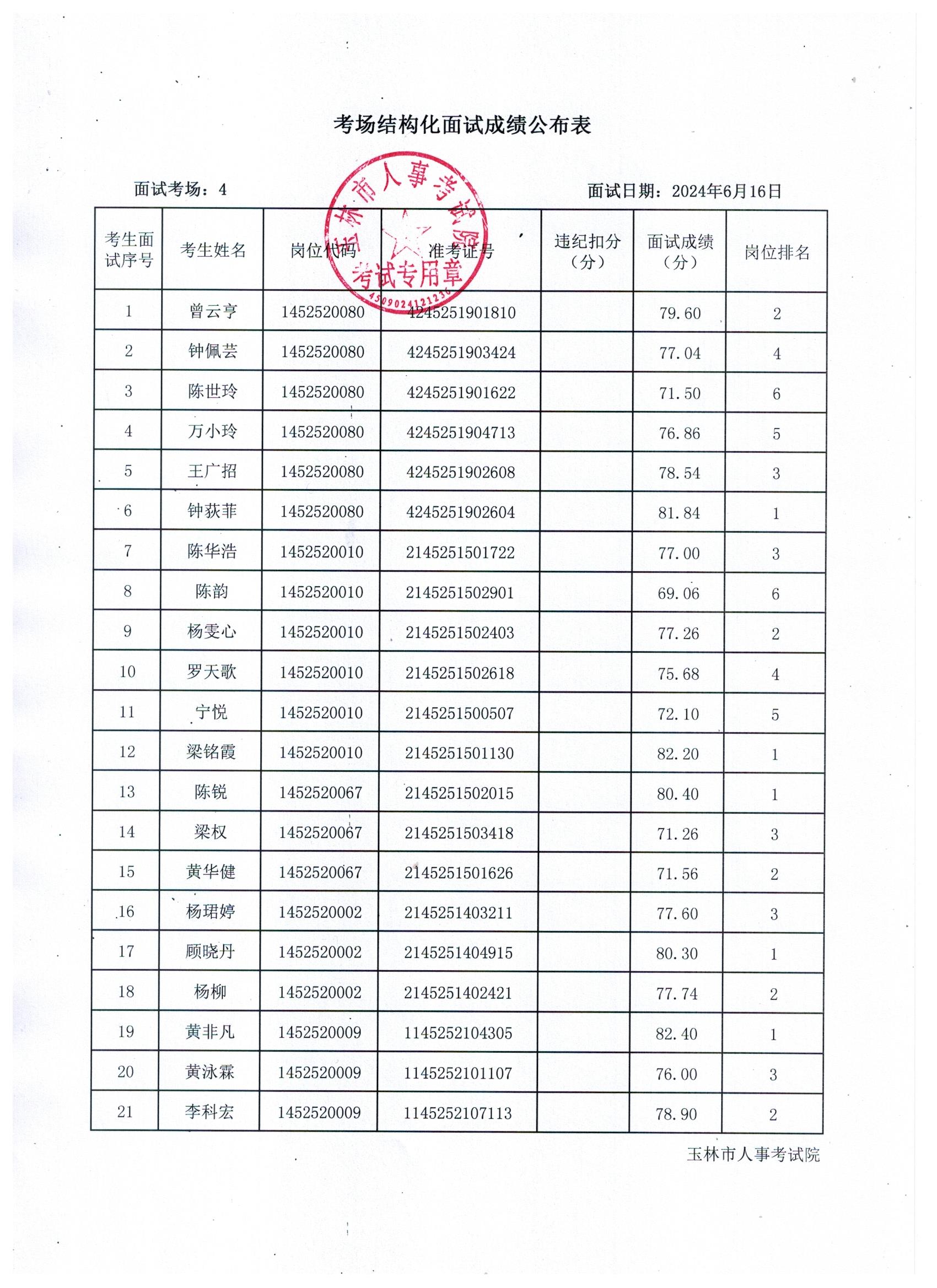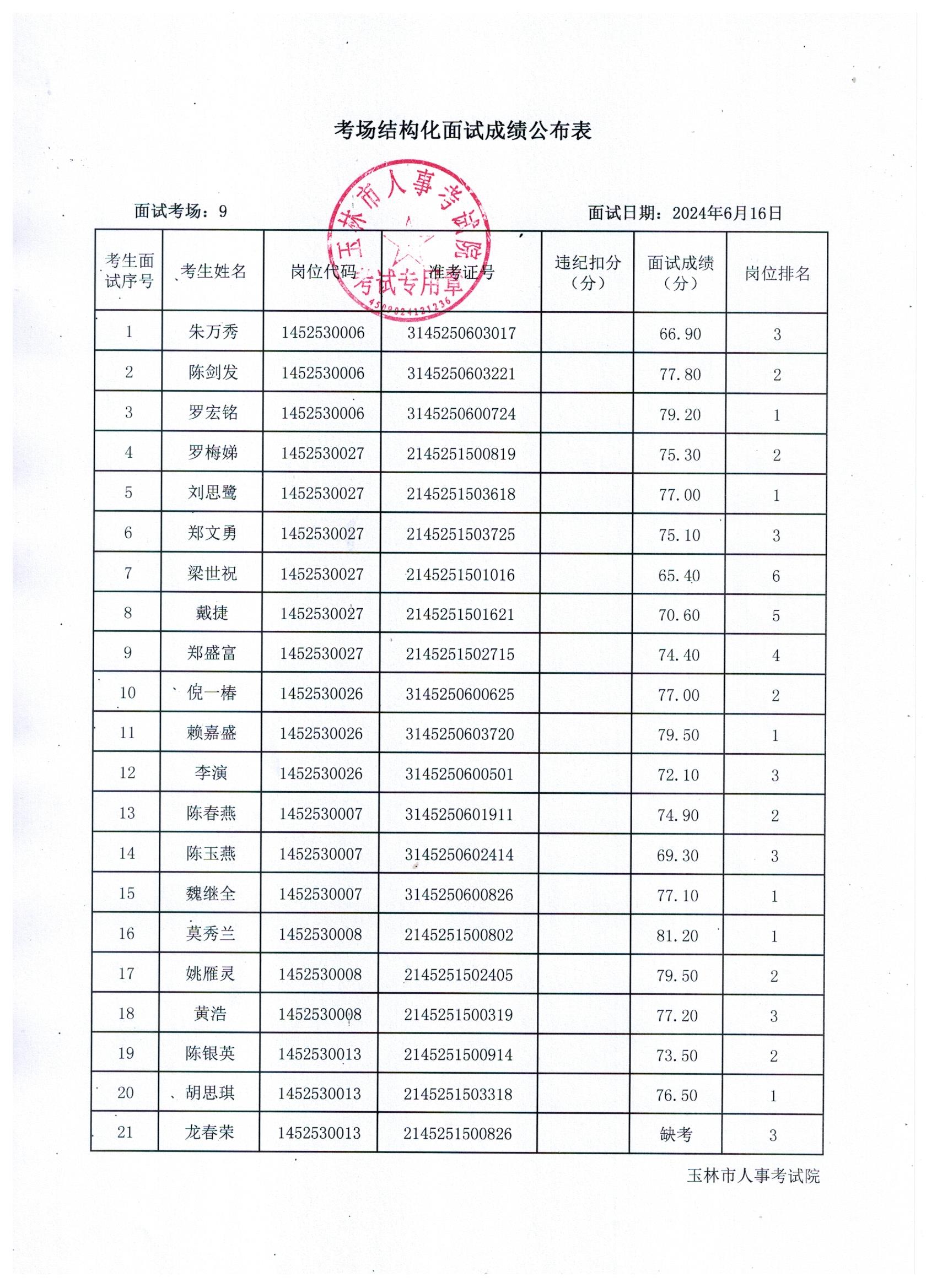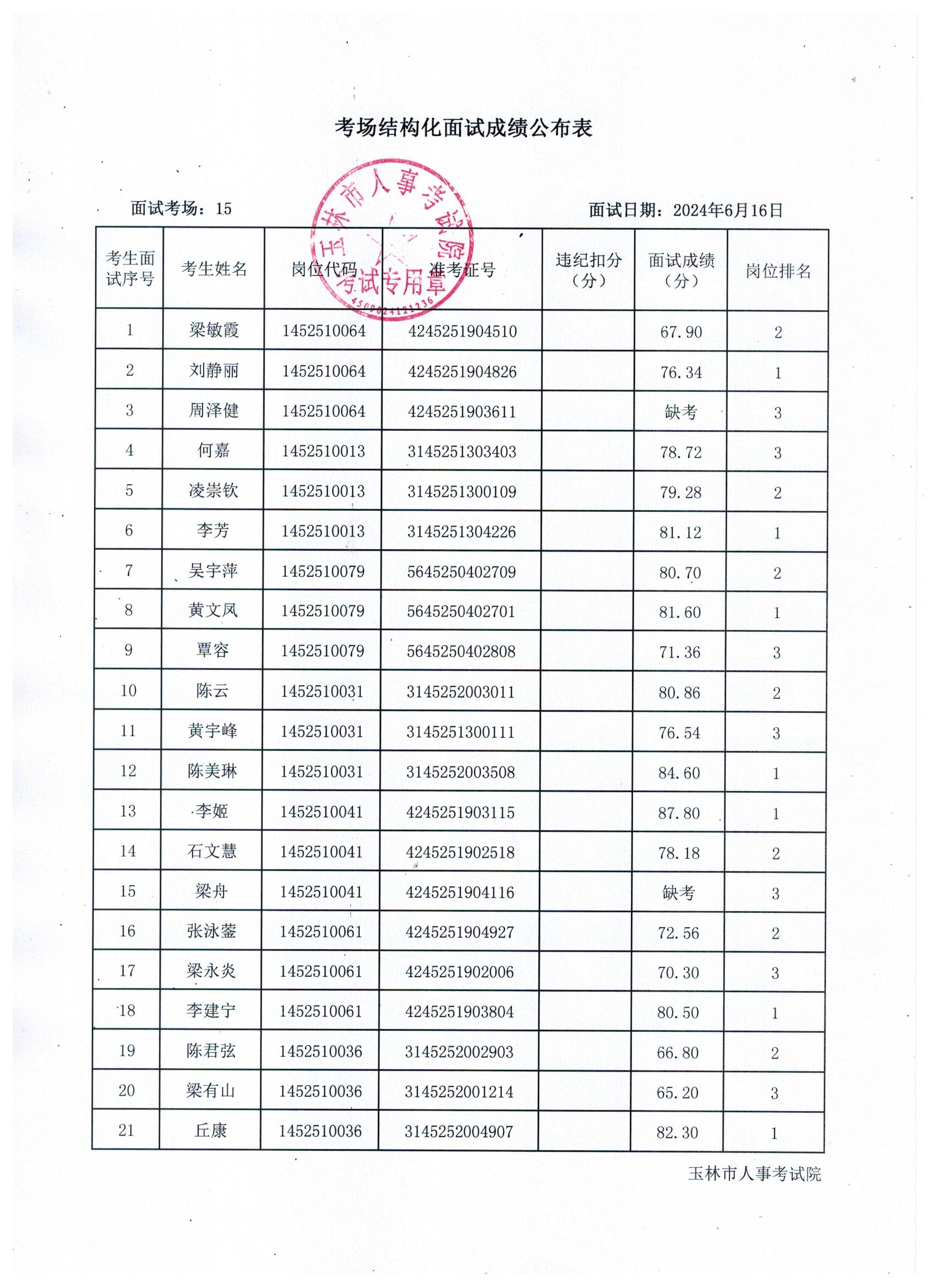 原文標(biāo)題:2024年玉林市直(含玉州區(qū)、福綿區(qū)、玉東新區(qū))事業(yè)單位公開(kāi)招聘人員面試成績(jī)公布(6月16日)