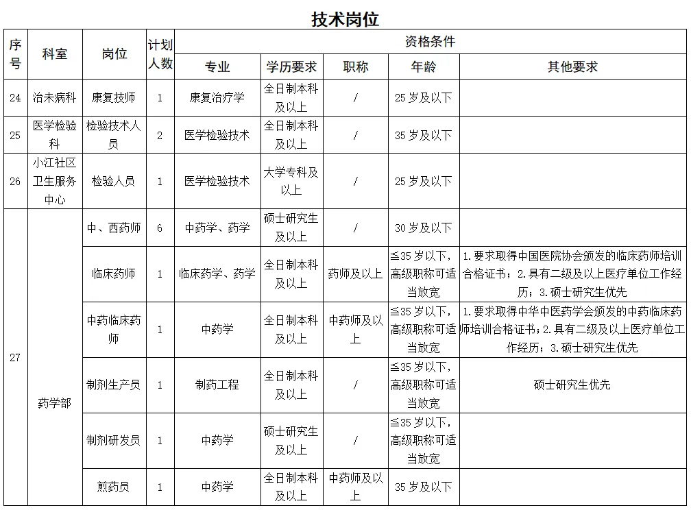 5.招聘崗位中碩士研究生學歷及以上者、醫(yī)學類副高及以上職稱者優(yōu)先。