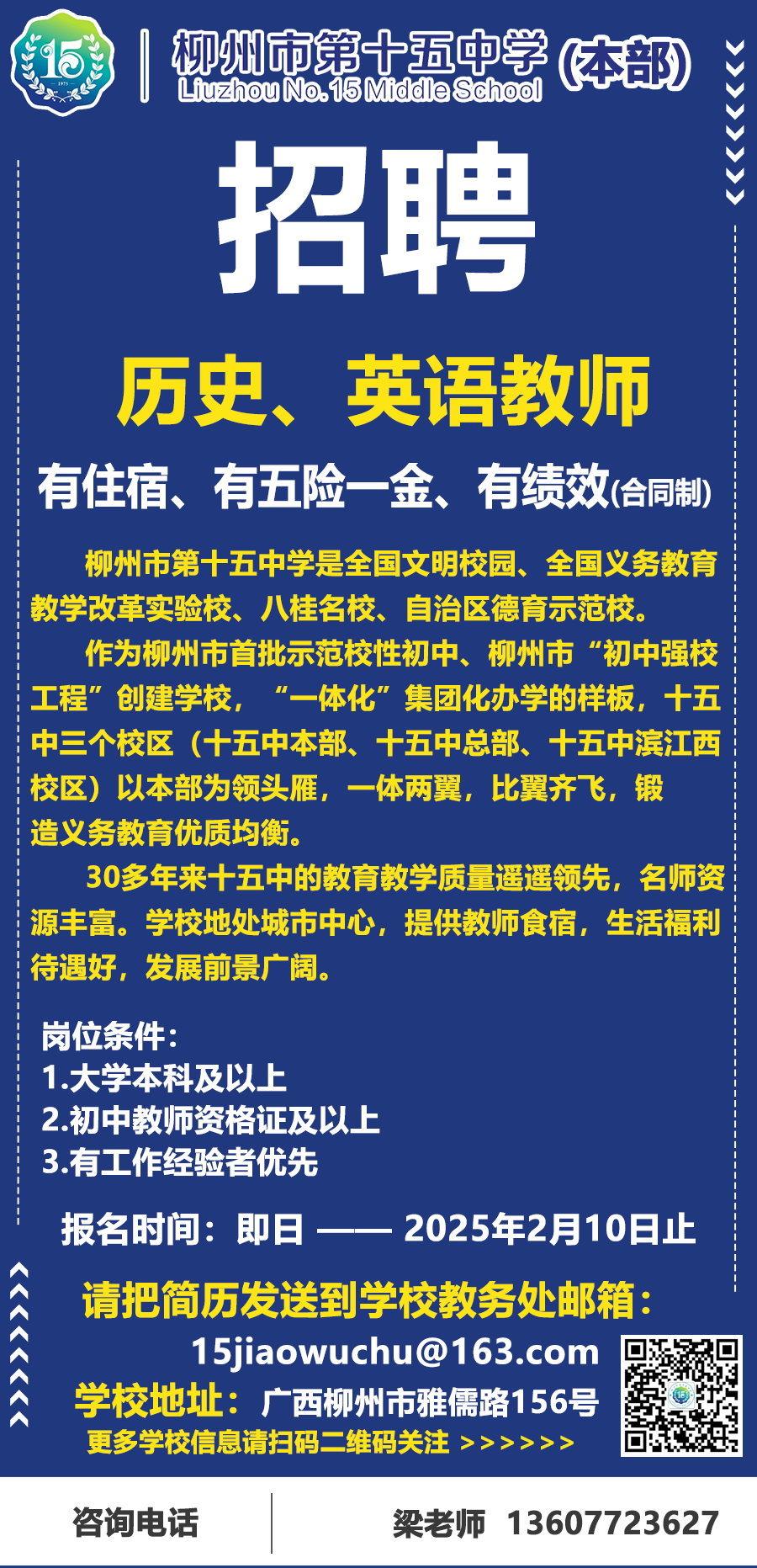 2025年柳州市第十五中學(xué)本部誠(chéng)聘歷史、英語(yǔ)老師
