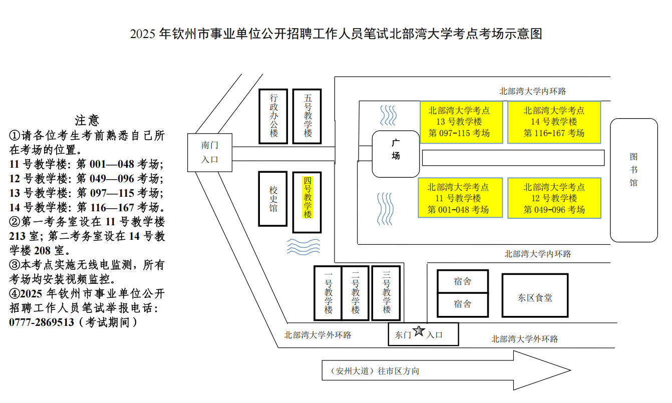 (二)請(qǐng)考生按照本人準(zhǔn)考證上的考點(diǎn)學(xué)校,提前了解學(xué)校所在位置,特別注意不要混淆北部灣大學(xué)考點(diǎn)與北部灣職業(yè)技術(shù)學(xué)??键c(diǎn)。部分考點(diǎn)學(xué)校離市區(qū)有一定距離,請(qǐng)關(guān)注當(dāng)天交通情況和天氣情況,充分考慮路途時(shí)間和天氣因素影響,提前謀劃出行時(shí)間、路線(xiàn)和交通工具,建議提前60分鐘到達(dá)考點(diǎn),以免影響正常入場(chǎng)參加考試。