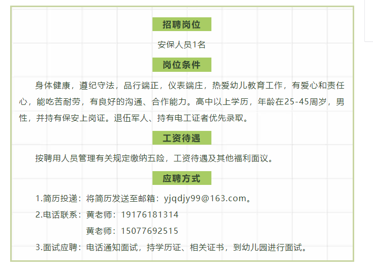 百色市右江區(qū)第九幼兒園招聘安保人員1人