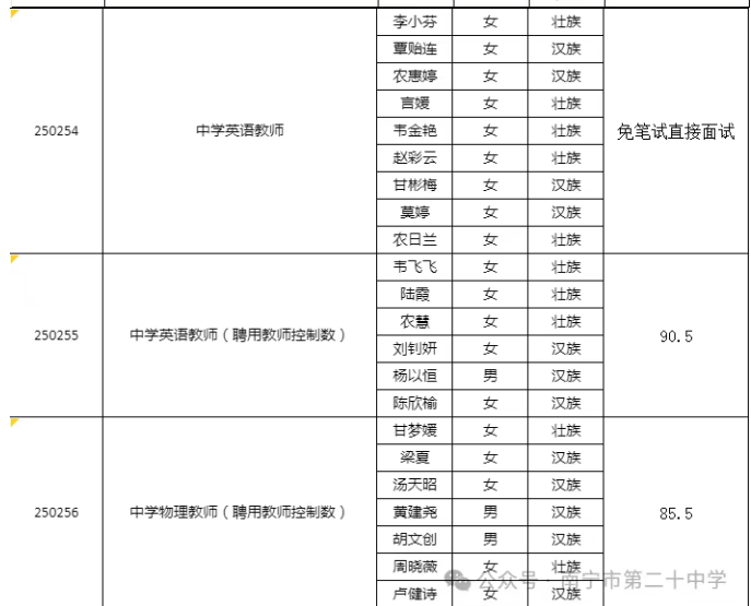 南寧市第二十中學(xué)2025年公開考試招聘中小學(xué)教師面試入圍人選資格審查通知