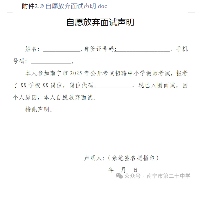 原文標題:南寧市第二十中學(xué)2025年公開考試招聘中小學(xué)教師面試入圍人選資格審查通知