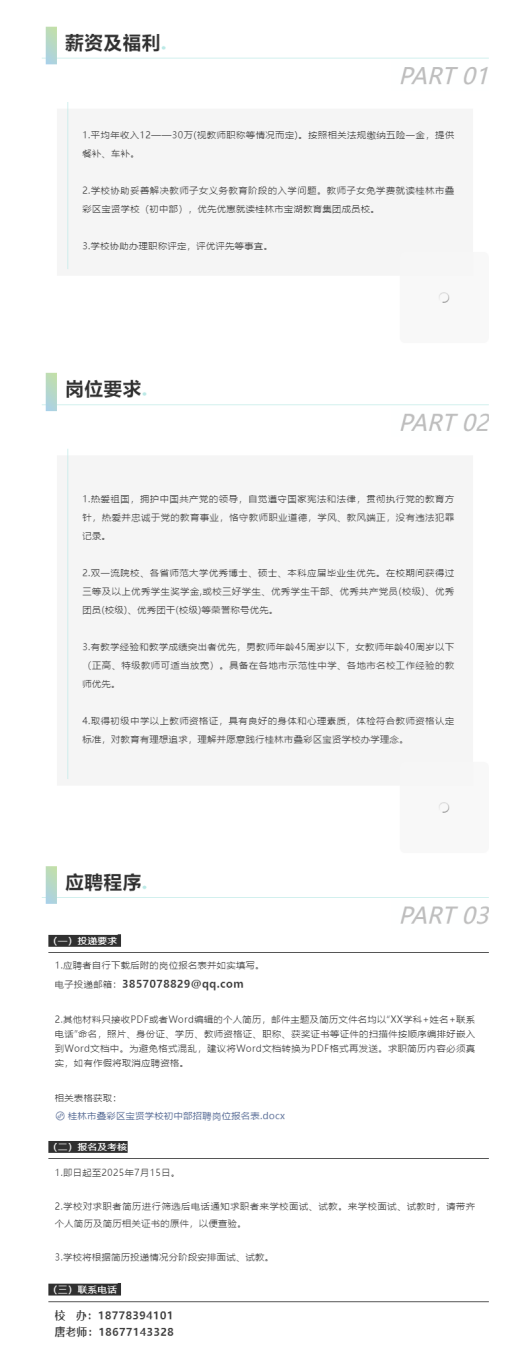 桂林市疊彩區(qū)寶賢學校招聘教師若干人