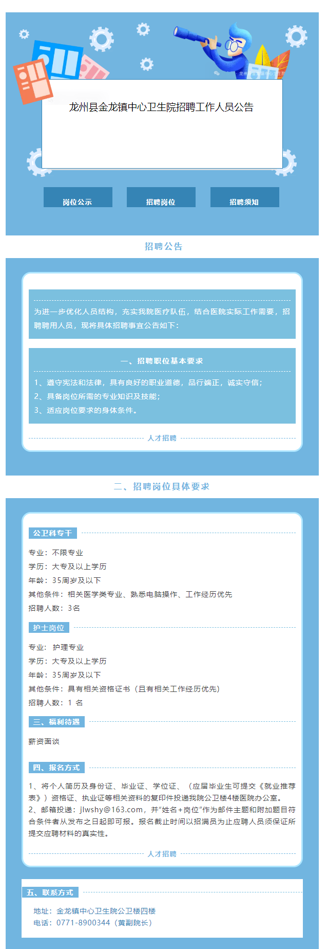 龍州縣金龍鎮(zhèn)中心衛(wèi)生院招聘工作人員4人