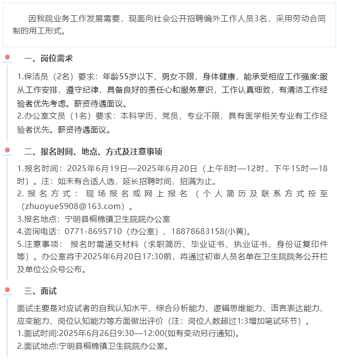 2025年寧明縣桐棉鎮(zhèn)衛(wèi)生院招聘3人