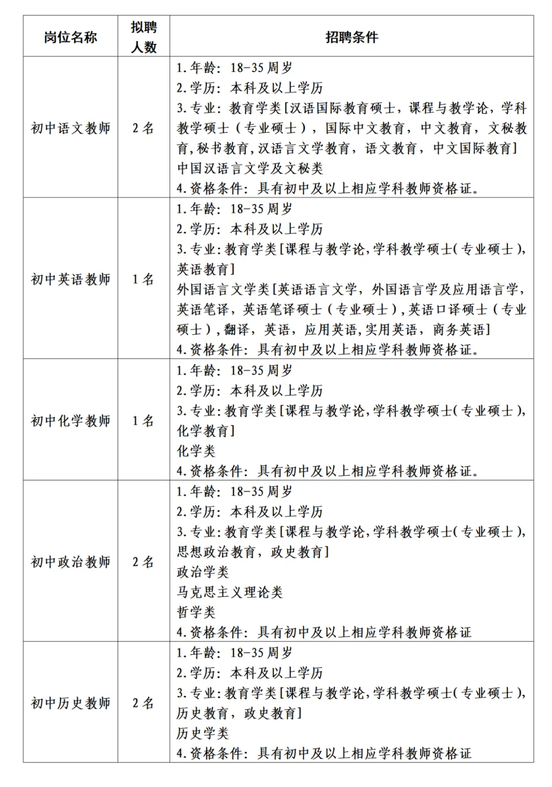 (六)18周歲以上、35周歲以下。有教學經(jīng)驗豐富、碩士研究生或中級職稱以上的應聘人員,年齡可適當放寬到45周歲。