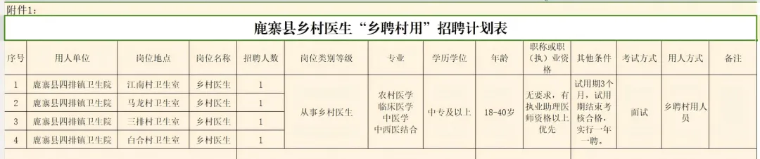 原文標題:鹿寨縣四排鎮(zhèn)衛(wèi)生院:2025年鄉(xiāng)村醫(yī)生“鄉(xiāng)聘村用”招聘公告