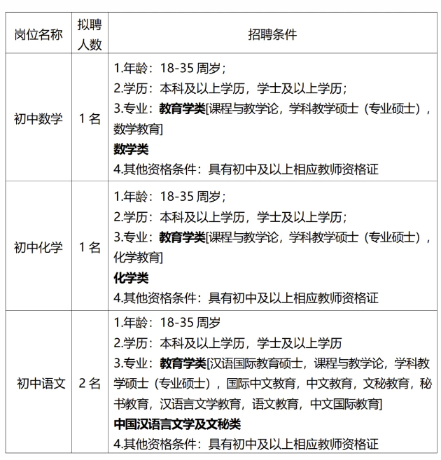 (六)18周歲以上、35周歲以下。有教學經(jīng)驗豐富、碩士研究生或中級職稱以上的應聘人員,年齡可適當放寬到45周歲。