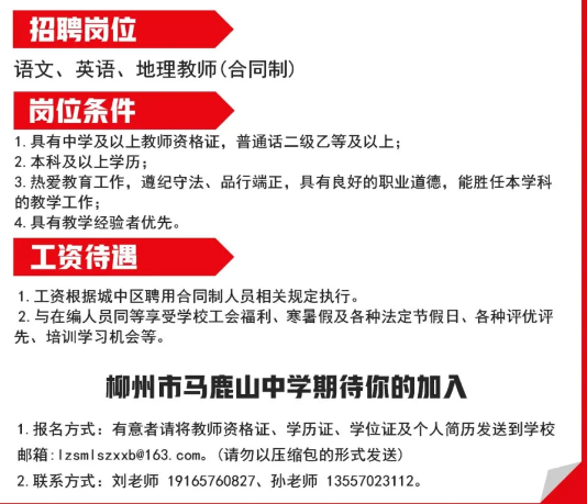 2025年柳州市馬鹿山中學招聘語文、英語、地理教師