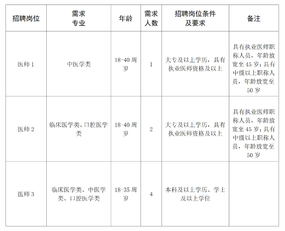 根據(jù)醫(yī)院發(fā)展需求,歡迎符合我院臨床醫(yī)學(xué)專業(yè)的專家前來應(yīng)聘從事臨床醫(yī)療工作,具有中級(jí)及以上醫(yī)師資格職稱,待遇根據(jù)相關(guān)政策規(guī)定給予。