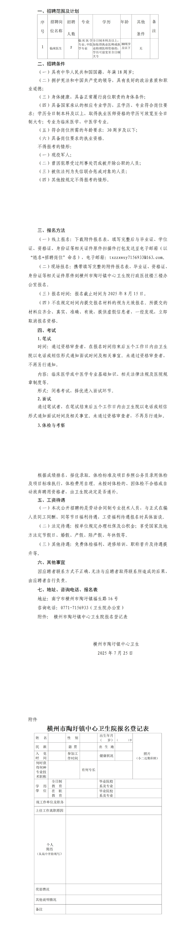 橫州市陶圩鎮(zhèn)中心衛(wèi)生院公開招聘編外衛(wèi)生專業(yè)技術人員的公告
