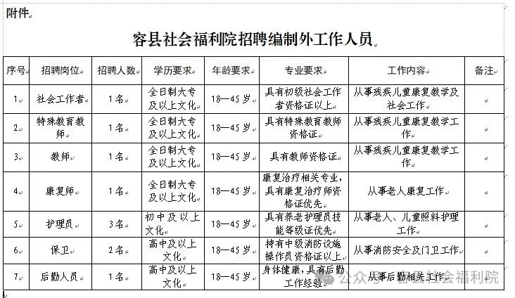 原文標題:2025年容縣社會福利院公開招聘編外工作人員公告
