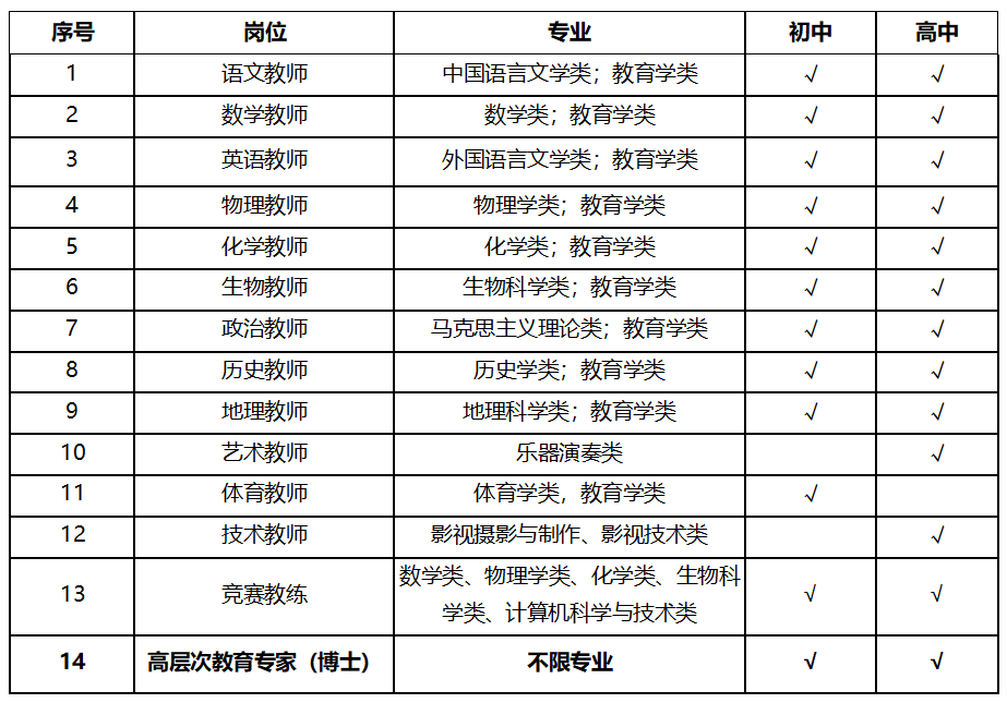 優(yōu)秀教育人才公開(kāi)招聘崗位要求