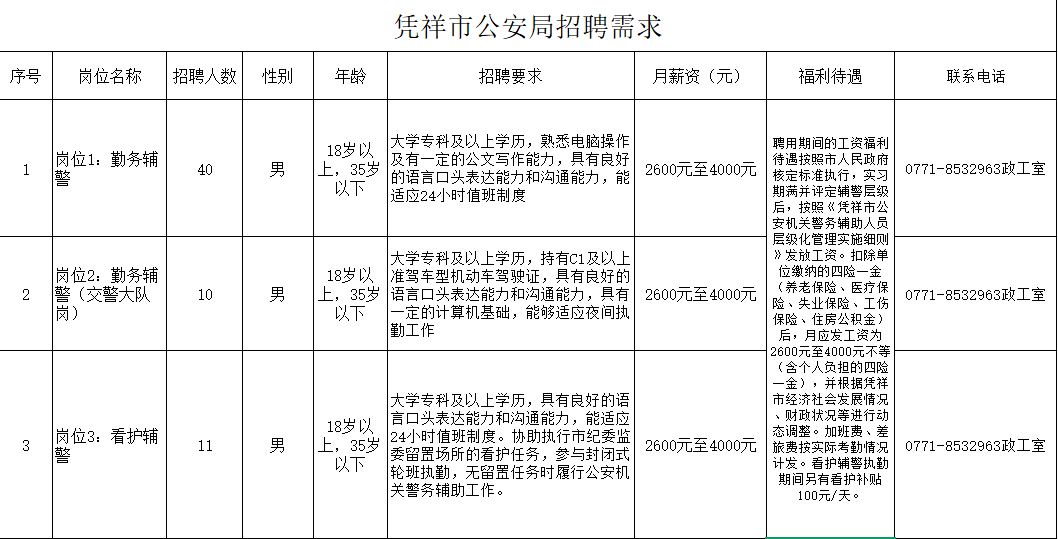 通過資格審查的人員,憑祥市公安局將統(tǒng)一進行筆試、體能測試及面試。