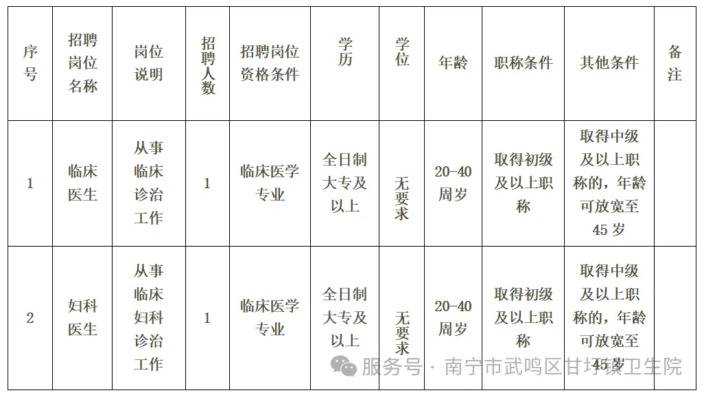 2025年南寧市武鳴區(qū)甘圩鎮(zhèn)衛(wèi)生院公開(kāi)招聘編外工作人員2人