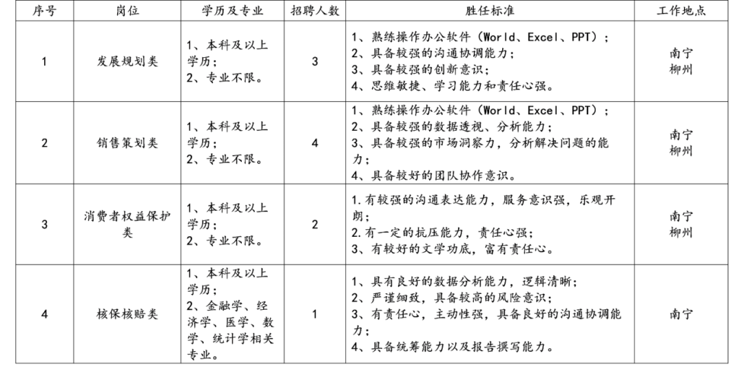 平安人壽廣西分公司成立于1993年,至今已有32年,現(xiàn)已在全區(qū)14個地市設(shè)立有分支機構(gòu),共設(shè)立12個中心支公司、15個支公司、26個營銷服務(wù)部。公司致力于為客戶提供“簡單、便捷、友善、安心”的服務(wù)體驗,以“最受尊敬的壽險公司”為目標(biāo),持續(xù)優(yōu)化經(jīng)營管理,業(yè)務(wù)保持穩(wěn)健發(fā)展。截至目前,我們共為288萬名客戶送去保險保障,保險賠付金額超25.6億元,累計納稅超11億元,分公司各項指標(biāo)呈健康發(fā)展趨勢。廣西分公司內(nèi)勤隊伍近400人,具有本科以上學(xué)歷人數(shù)占比超95%,均來自保險、金融、財會、法律、經(jīng)濟、醫(yī)學(xué)等各類專業(yè),并具備豐富的管理經(jīng)驗和較高的綜合素質(zhì)。