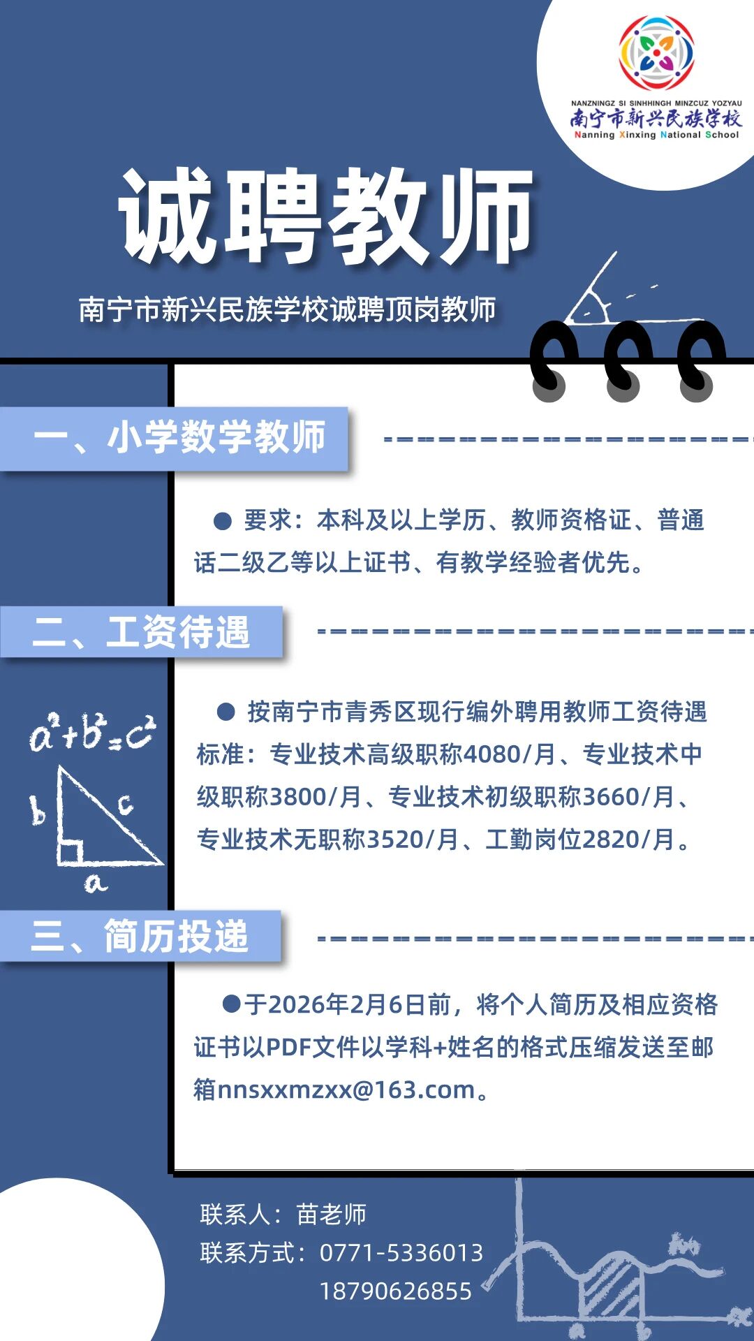 2026年南寧市新民中學(xué)誠聘教師