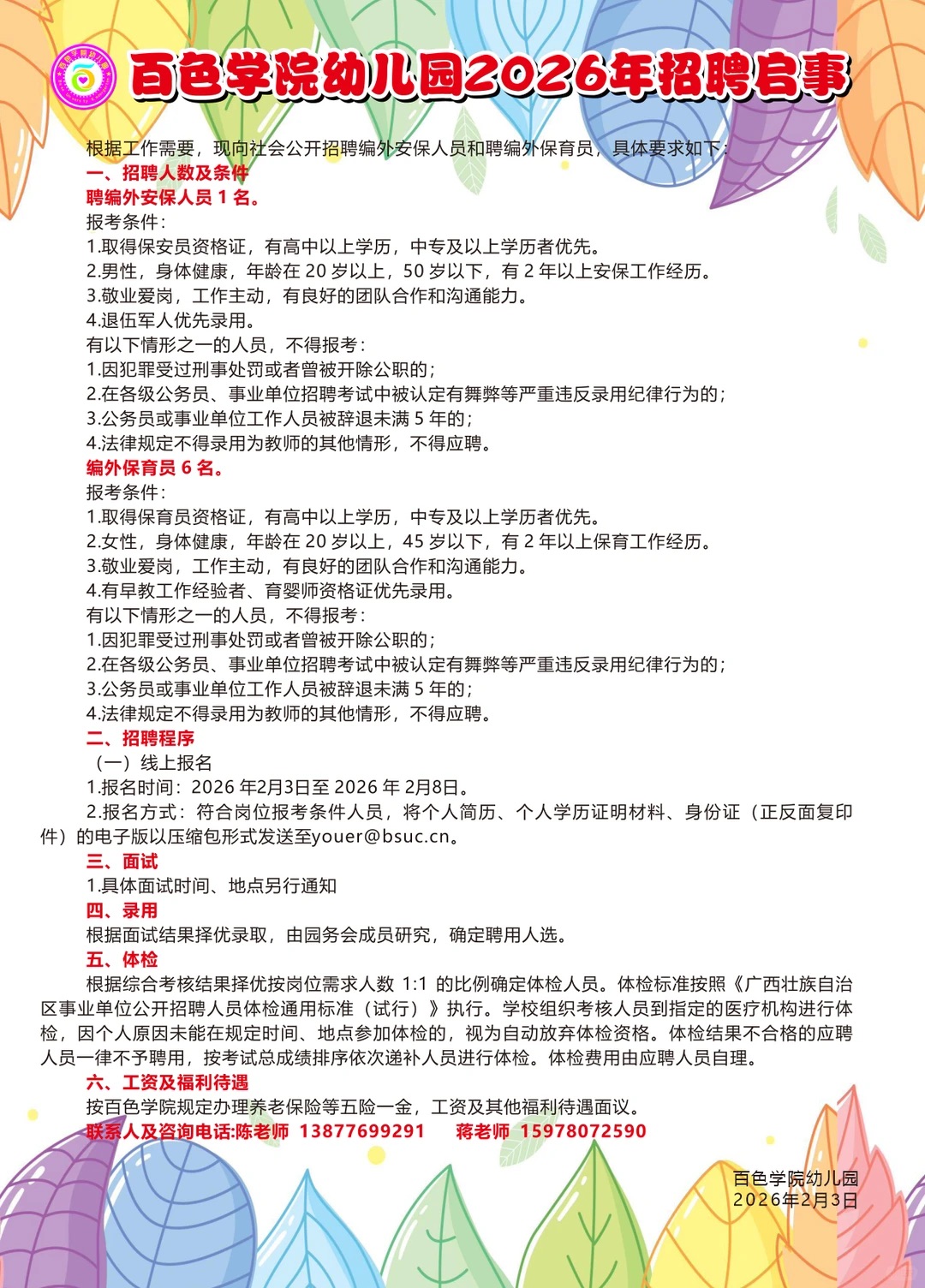 原文標(biāo)題:百色學(xué)院幼兒園2026年招聘啟事